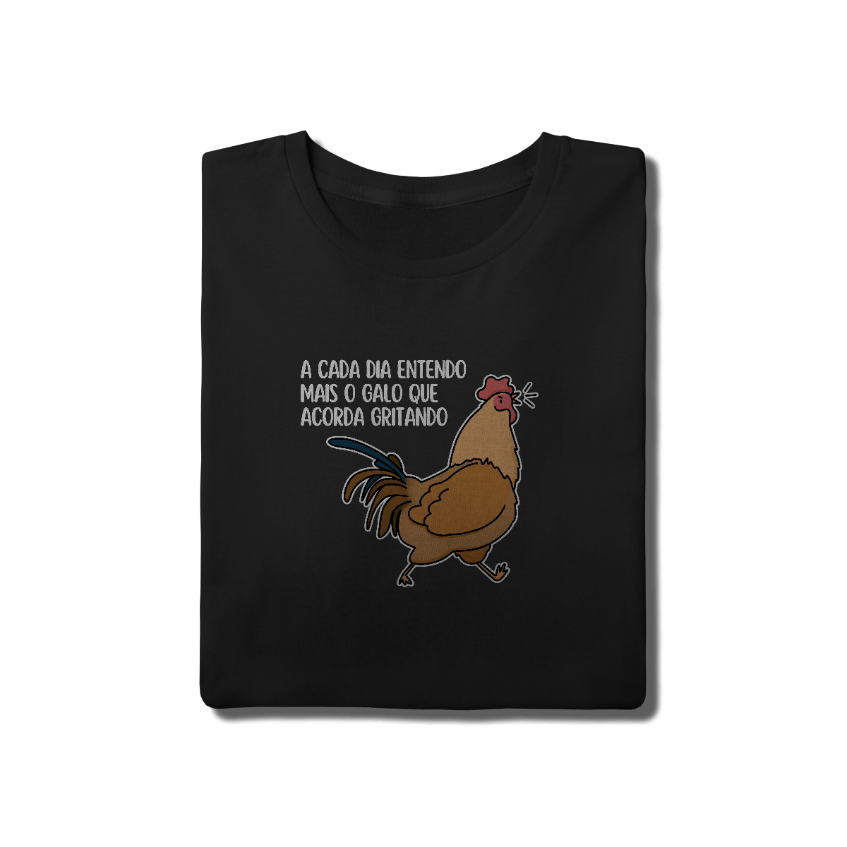 A cada dia entendo mais o galo: acordando gritando, irritado sem motivo e andando de um lado pro outro igual alma penada. Se você também já acorda querendo tretar com o despertador, essa estampa é o seu novo uniforme matinal.