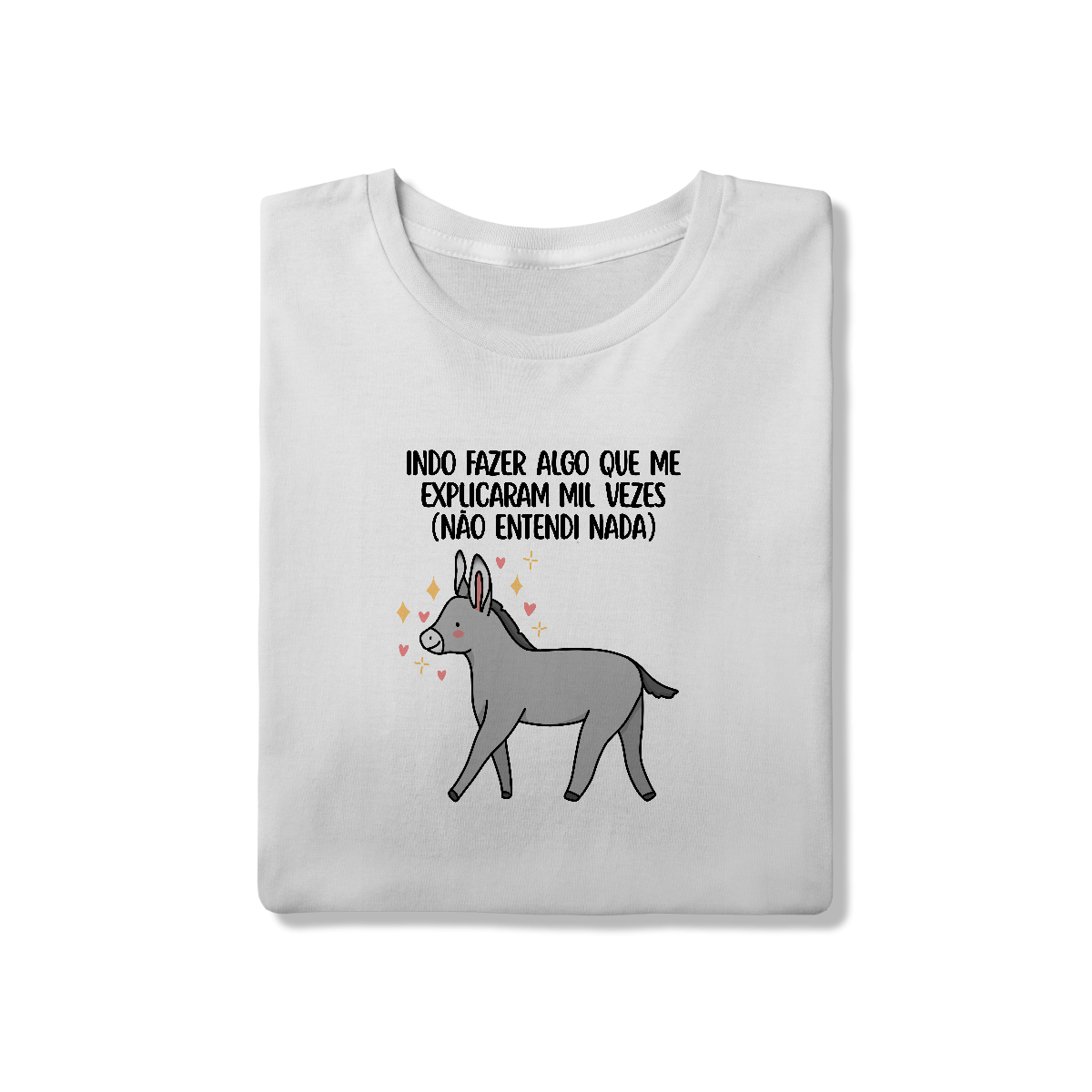 Indo cheio de confiança fazer o que explicaram mil vezes e continua um mistério? O burrinho ilustra a arte de fingir costume: sorriso, zero tutorial na cabeça e coragem memeira. Quem nunca?