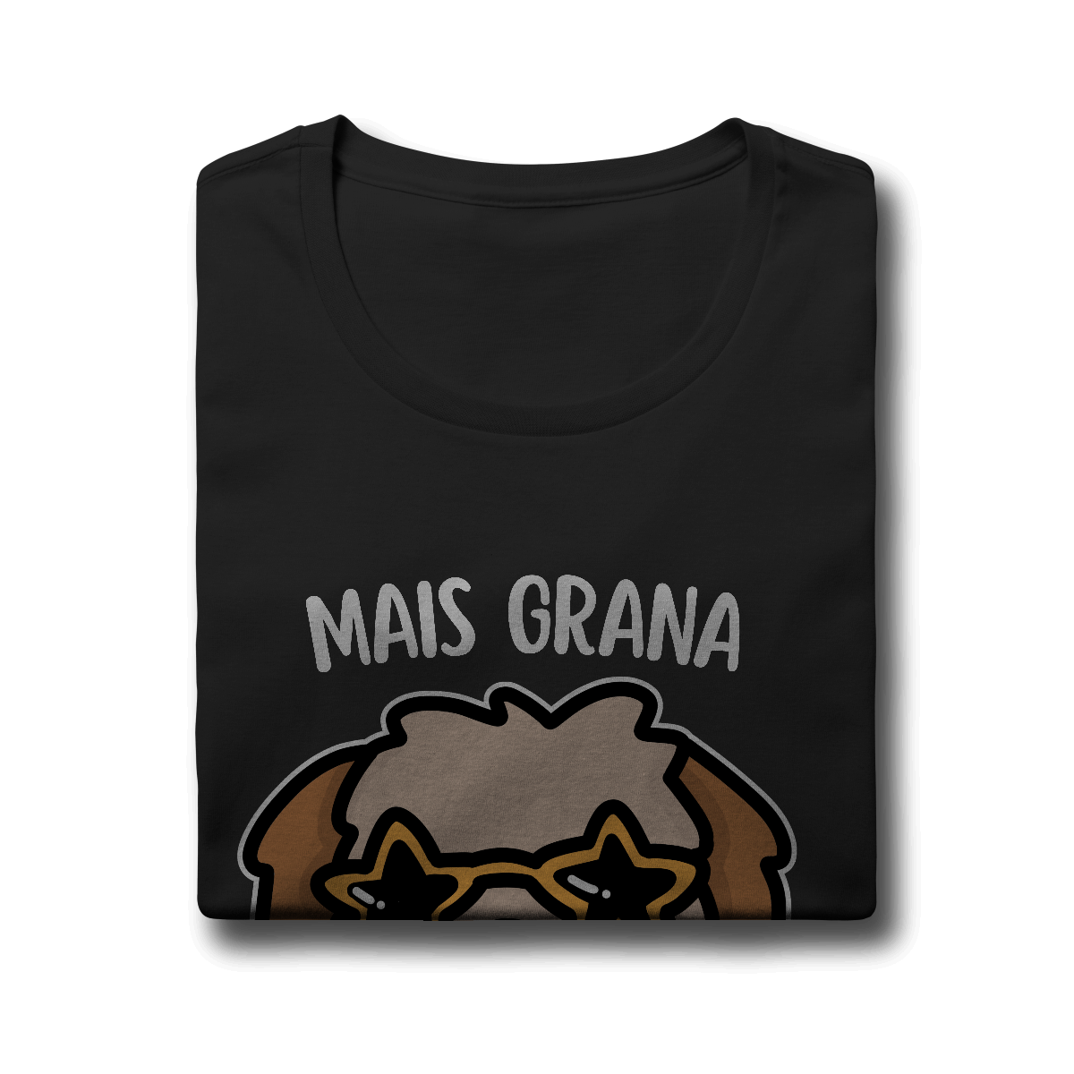 Mais grana, menos drama! A estampa perfeita pra quem já cansou de tretas e agora só quer paz, pet e pix caindo na conta. Se você tá no modo "rico e tranquilo", esse doguinho estiloso representa sua vibe 100%.