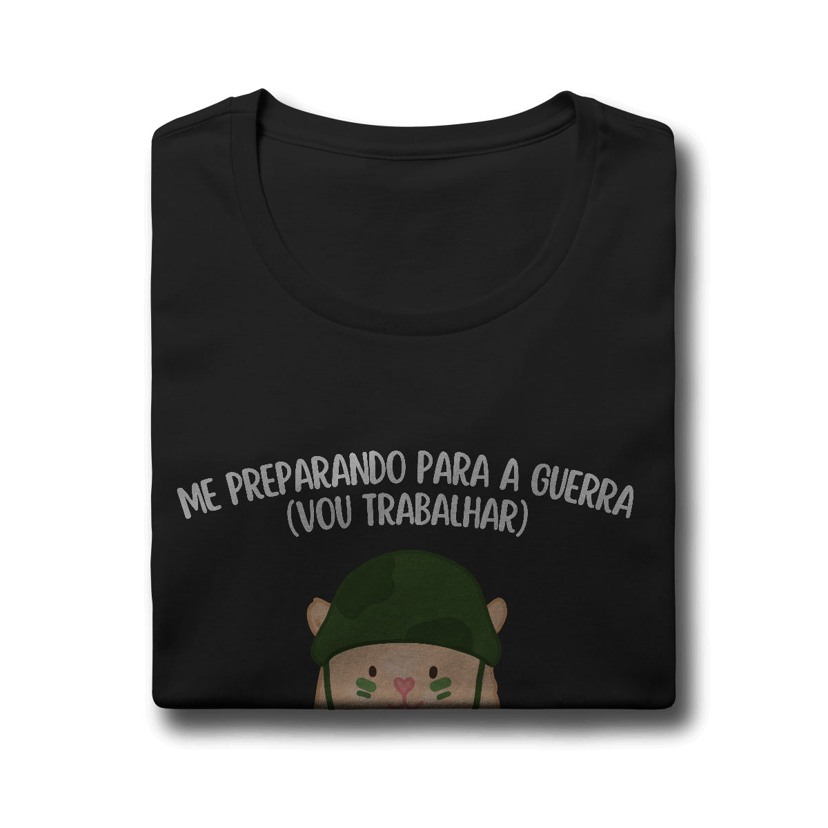 Me preparando pra guerra (vou trabalhar): um meme em forma de estampa pra quem acorda no modo soldado, mas só vai enfrentar planilhas, chefes e café ruim. Se o seu campo de batalha é o escritório, essa é pra você!